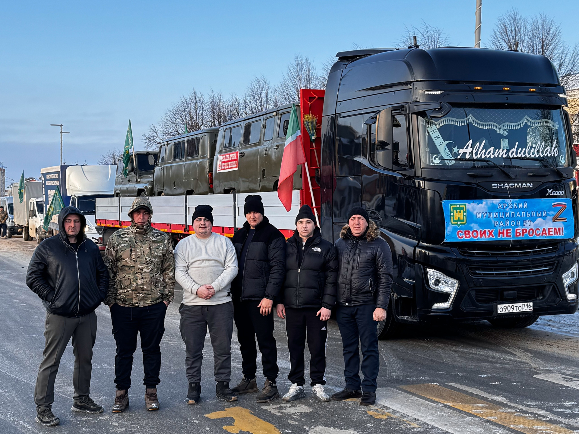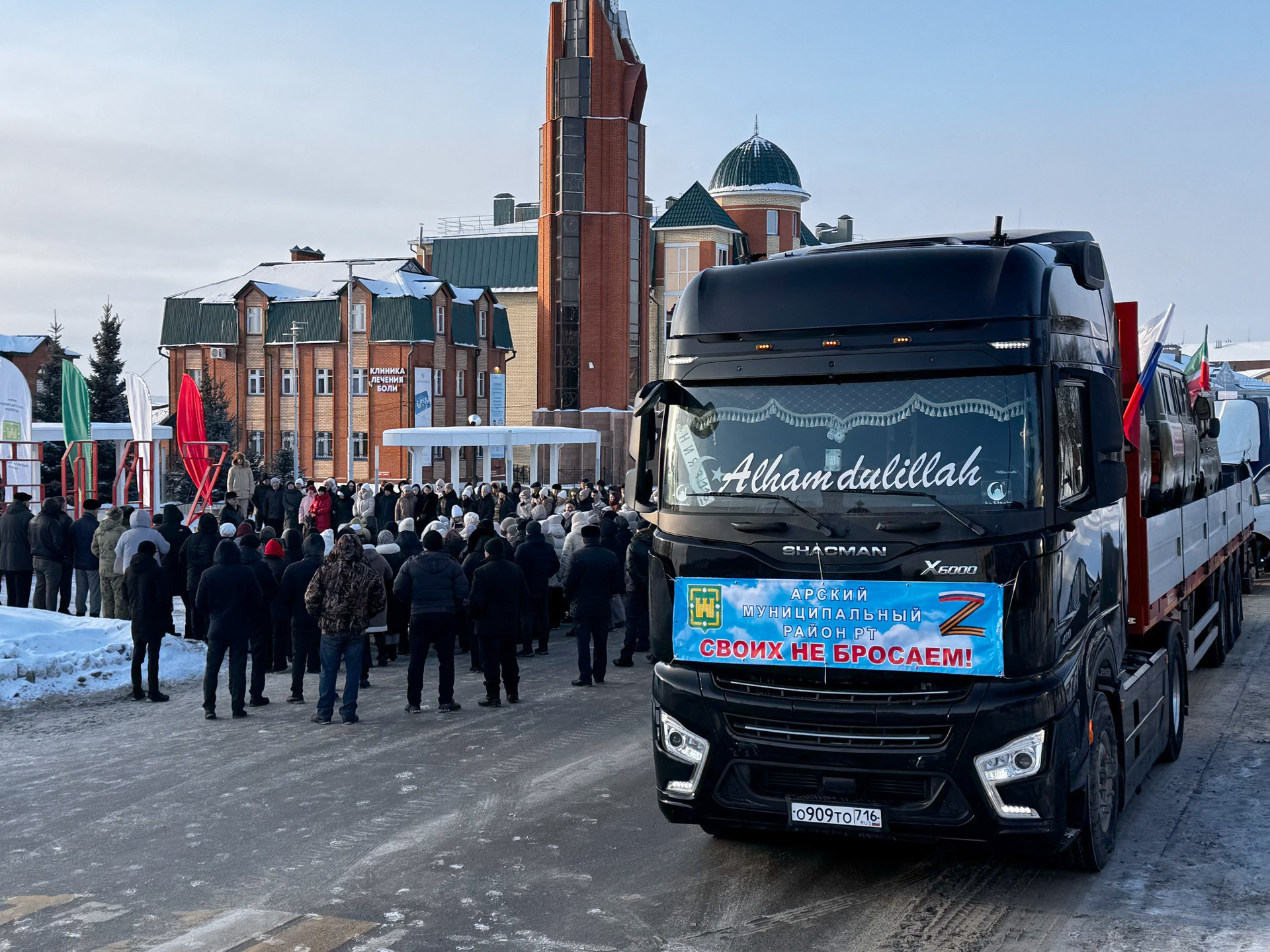 Сегодня, 26 февраля, на центральной площади г. Арска состоялась отправка автоколонны с гуманитарной помощью для земляков в зону СВО. Выезжаем до Северодонецка. А с Северодонецка уже повезем запчасти на ТО ребятам и рации в Дебальцево.